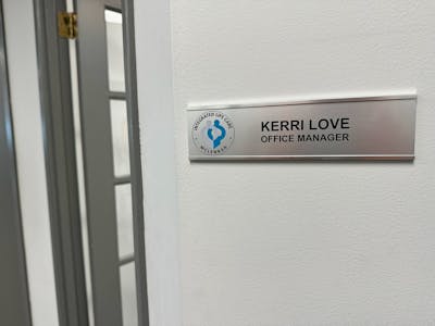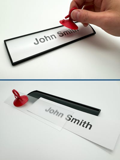 Our nameplates can be installed directly onto glass, wall, or door surfaces. We also offer a wide range of sign holders, which provide a polished and professional way to display name plates while allowing for easy updating. Our sign holders are available in both surface mount and free standing desk mount models.